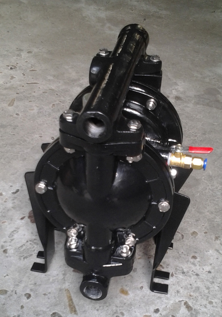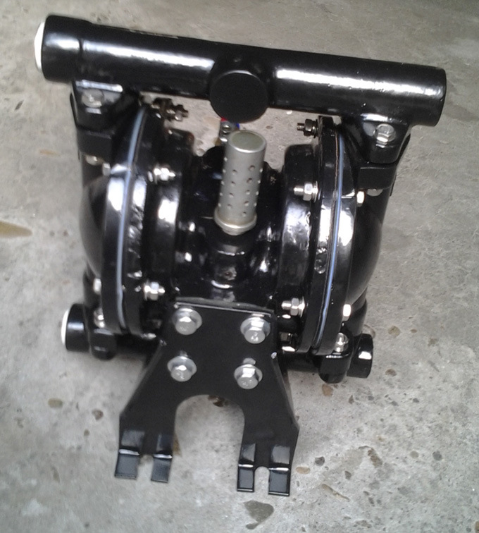 本厂生产的铝合金隔膜泵 QBY-25属于一种新型的液体输送机械,性能已达到国外同类产品水平,性能参数同类英格索兰ARO气动隔膜泵产品相近,是目前国内行业中新型的泵类,采用压缩空气为动力源,具有优良的压力和流量自动调节特性,在工作压力范围内可任意设定压力,即使输出口堵塞流量为零时也不会损坏泵,产品广泛用于各种流体的输送和作为加压滤机的进料泵。泵的气液部分采用积木式设计,各部件具有多种不同材料,可供选用组合以适合输送不同的流体,如各种高含量和含有强磨损 型颗粒的物料,无堵塞通过的颗粒直径大,更适用于输送强酸、强碱等强腐蚀介质,均能胜任。采用压缩空气作为驱动力,气液两相完全隔离,采用静密封结构,有无泄漏和免润滑等优点,工作时无电火花产生,尤其适用于要求防爆的场合,气动马达采用抗阻塞、非平衡、先导阀技术设计,即使在较低的压缩空气压力下也具有较强的输送能力。