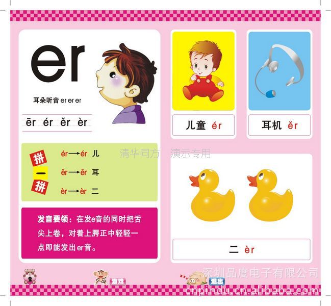 为了将如此优质而丰富的教学资源推广给全国广大的教师和学生,造福全国人民,清华同方响应清华大学的号召,于2006年在深圳成立了清华同方教育电子事业部,以硬件为载体,力图将优质教学资源送到全国每个学生的手中。到目前为止,同方教育电子产品已包括复读机、电子辞典、数码学习机、点读机、点读笔、学习DVD、学生电脑等七大类产品,适用于不同年龄段的不同人群,年龄低至1岁半的幼童均可以使用清华同方教育电子产品,