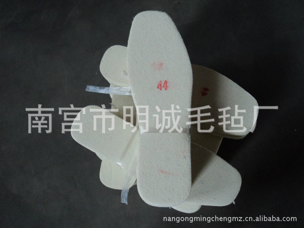 批发鞋垫:价格分类(0.6元/双、1200双/件。0.58元/双、1200双/件。加厚的1元/双。1000双/件) 毛毡鞋垫:因为原料是羊毛所以具有羊毛的特性弹性好、吸湿性强、保暖性好吸湿性强:羊毛为非常好的亲水性纤维,穿着非常舒适。保暖性:因羊毛具天然卷曲,可以形成许多不流动的空气区间作为屏障。耐用性:羊毛有非常好的拉伸性及弹性恢复性,并具有特殊的毛鳞结构以及极好的弯曲性,因此它也有很好的外观保持性。