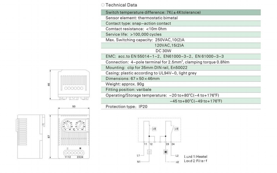 常闭:当设置好温度后,温控器处在常闭状态,当实际环境温度降到或接近设定温度时,就会启动负载加热,通常温控器处在常闭状态,当实际环境温度大于设定温度时,负载总是处在停运行状态。