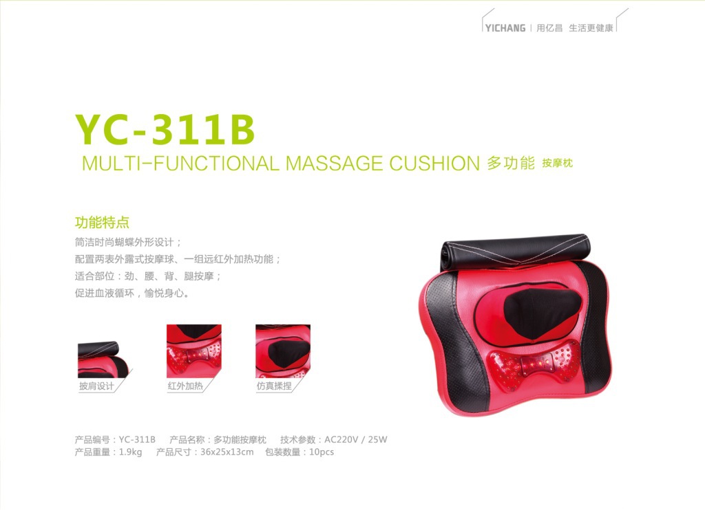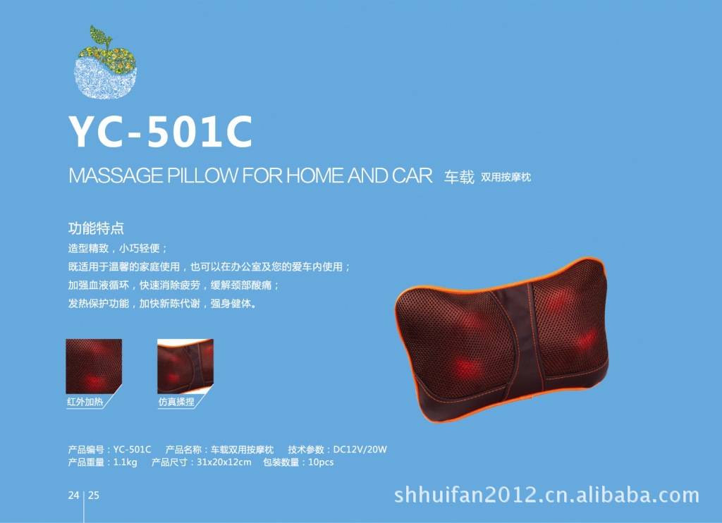 功能特点:造型精致,小巧轻便,既适用于温馨的家庭使用,也可以在办公室及您的爱车内使用;加强血液循环,快速消除疲劳,缓解颈部酸痛;发热保护功能,加快新陈代谢,强身健体。