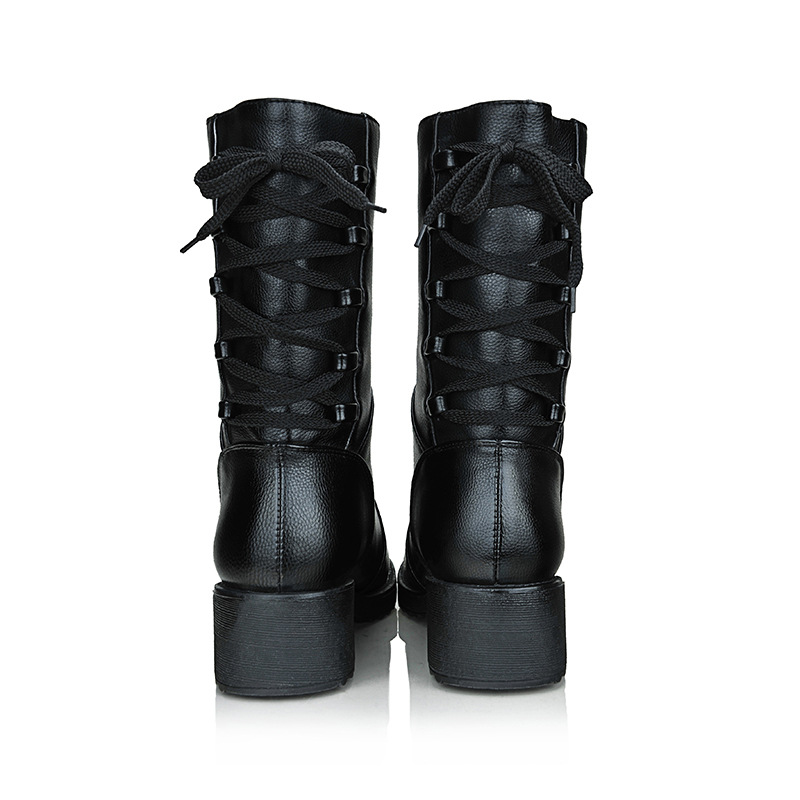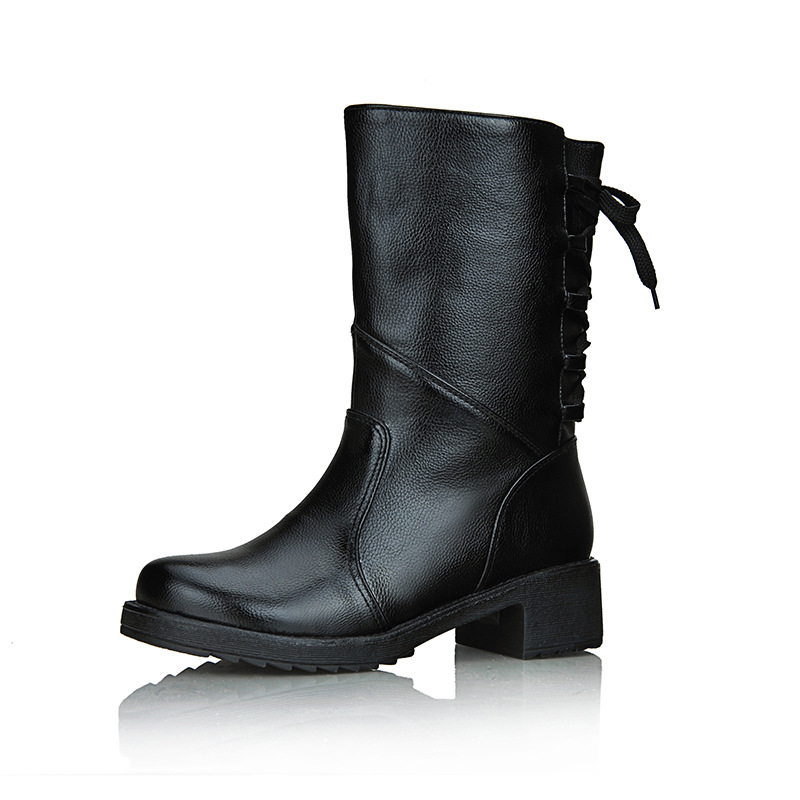 时尚秋冬欧美真皮马丁靴女靴时尚后系带马蹄跟中筒靴女靴