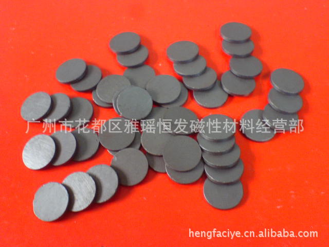 永磁铁氧体又叫铁氧体磁钢,一种具有单轴各向异性的六角结构的化合物,就是我们平时见到的黑色小磁铁。其组成原材料主要有氧化铁、碳酸钡或碳酸锶。有同性磁和异性磁之分。由于这类铁氧体材料在外界磁化场消失以后,仍能长久地保留着较强的恒定剩磁性质,可以用于对外部空间产生恒稳的磁场。其应用很广泛,例如:在各类电表中、发电机、电话机、扬声器、电视机和微波器件中作为恒磁体使用。