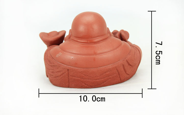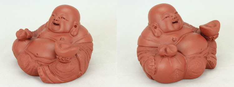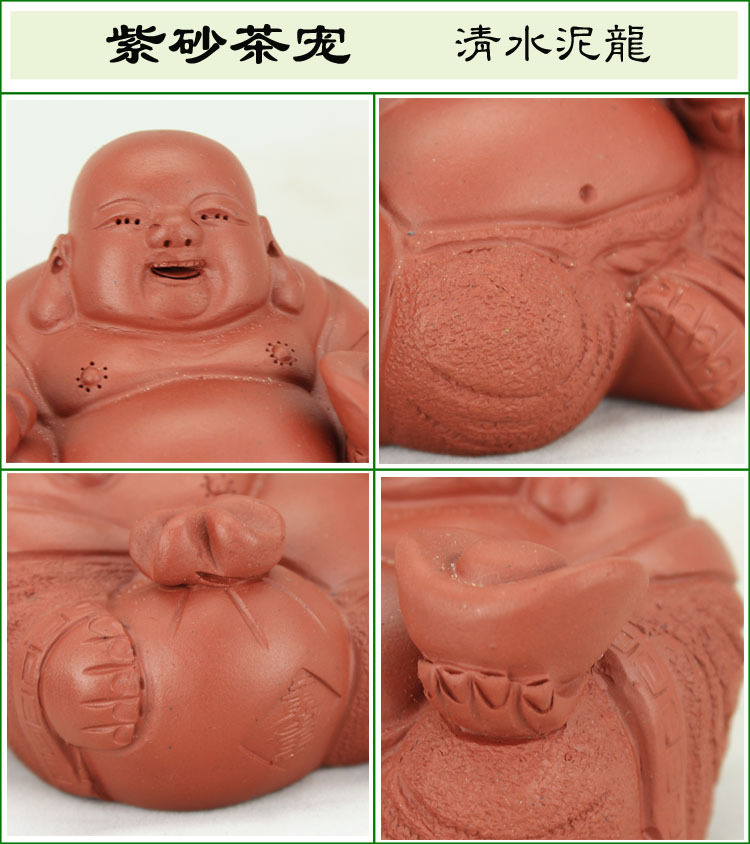 紫来顺 宜兴紫砂茶宠摆件赏玩清水泥弥勒佛 笑容憨态可掬