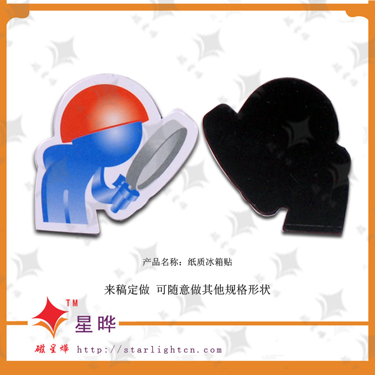 本产品采用磁性材料表面铜板纸彩色印刷过光胶背面贴橡胶磁制作而成,色彩丰富,图案不易刮花,使用寿命长,移动方便,自由组合,避免了粘贴胶质遗留痕迹的问题,可贴于冰箱贴等任何金属平面物体外表。使用范围广,是商务促销的最佳选择。