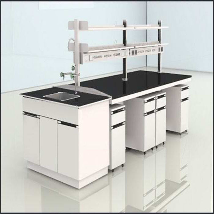 产品结构特点—— 一、全钢结构实验台整体结构紧凑、美观,易于保持清洁。整体结构强度及承重能力好。实验台台面选用12.7mm厚实芯理化板,具有优越的防腐性,极强的防滑、抗冲击性。实验台柜体为1.0mm厚优质冷轧钢板。 全钢—带试剂架中央型实验台