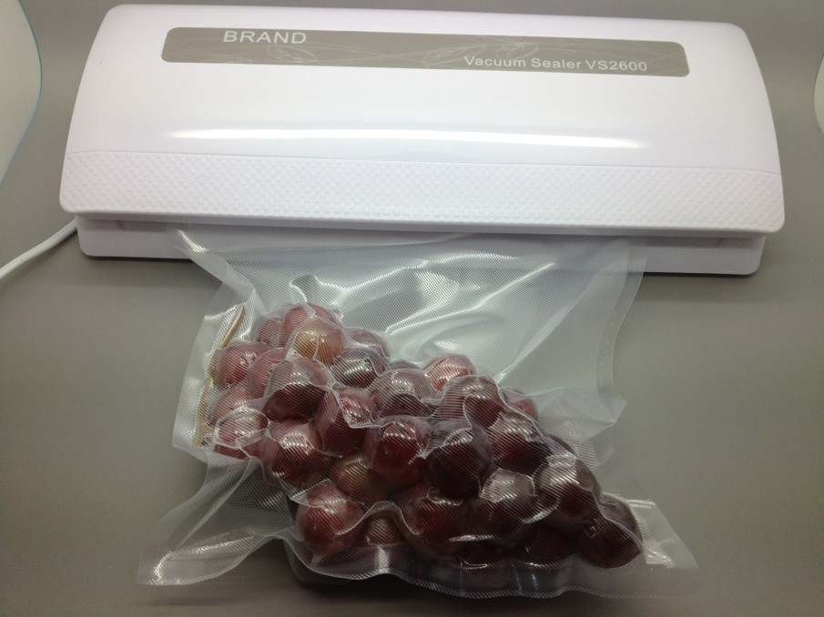 2.将装有食品的真空袋口放在真空封口机适当的位置上即可进行抽空、封口