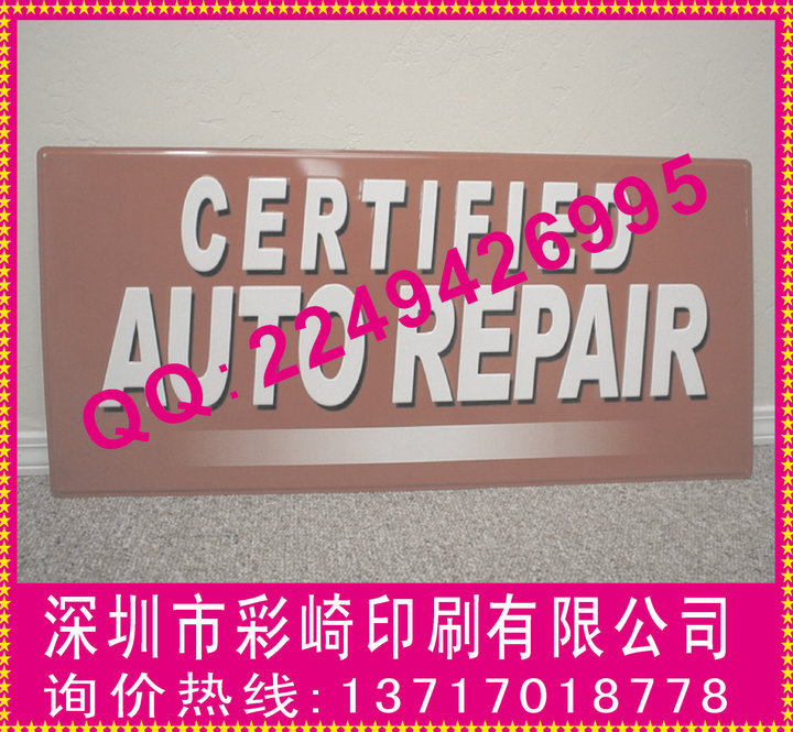铭牌定义:产品投放市场后,固定在产品上向用户提供厂家商标识别、品牌区分,产品参数铭记等信息的铭牌。铭牌又称标牌,铭牌主要用来记载生产厂家及额定工作情况下的一些技术数据,以供正确使用而不致损坏设备。制作铭牌的材料有金属类和非金属类之分别:金属类有锌合金、铜、铁、铝、 不锈钢等,但是主要用铝生产比较多,因为加工出来的铭牌效果相对要高档,经久耐用,不生锈.非金属类有塑料、亚克力有机板、PVC、PC、纸等。