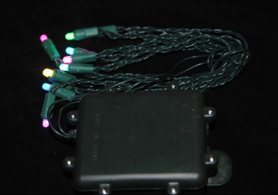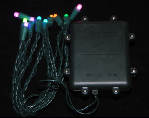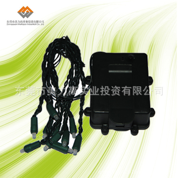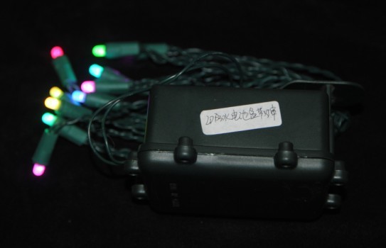 产品说明:2D防水电池盒带灯串,装载2颗D型电池,彩色LED灯串