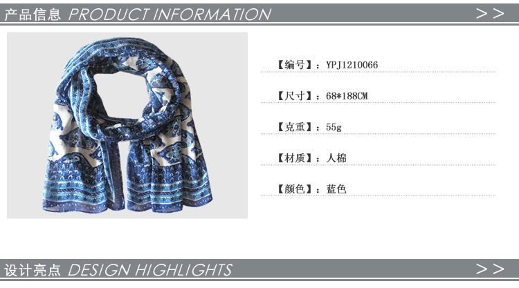 时尚新款 蓝色腰果印花围巾 围巾批发 围巾定做 厂家直销 外贸