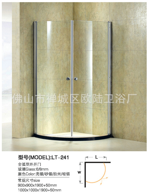 注意事项1、淋浴房尺寸的预埋孔位应在卫生间未装修前就先设计好。 2、已安装好供水系统和瓷砖的最好定做淋浴房。 3、布线漏电保护开关装置等应该在沐浴房安装前考虑好,以免返工。 4、沐浴房的样式依卫生间布局而定,常见的有转角型和一字型。 5、安装沐浴房时应严格按组装工艺安装。 6、淋浴房必须与建筑结构牢固连接,不能晃动。 7、敞开型淋浴房必须用膨胀螺栓,与非空心墙固定、排水后,底盆内存水量不大于500克。 8、沐浴房安装后的外观需整洁明亮,拉门和移门相互平行或垂直,左右对称、移门要开闭流畅,无缝隙、不渗水,淋浴房和底盆间用硅胶密封密封。
