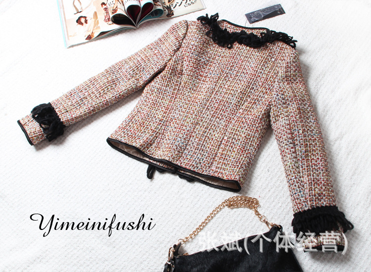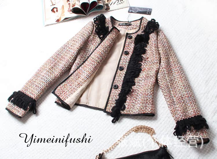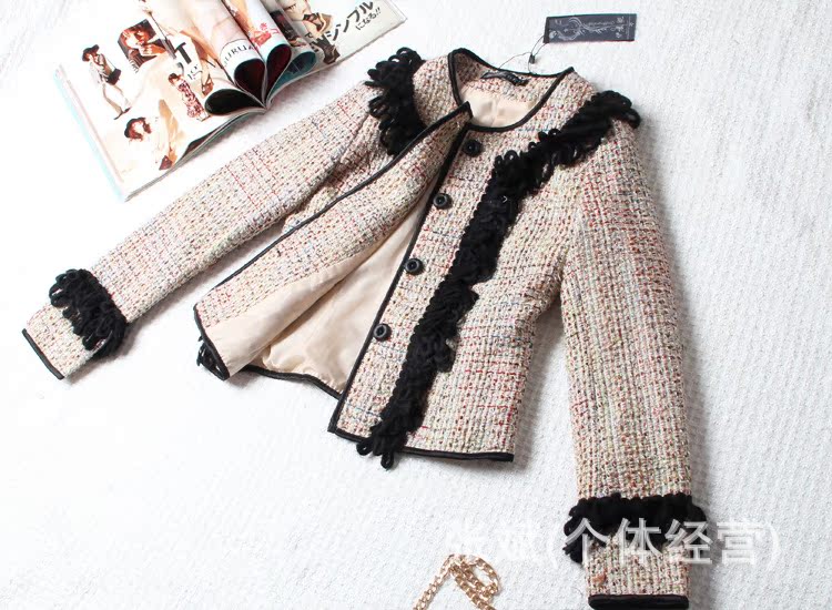 秋装韩国复古秋名媛气质款小香风短款套装 圈圈花边修身女装外套