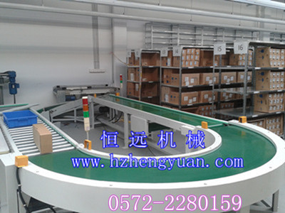 湖州恒远输送机械设备制造厂生产弯道皮带输送机主要有90度弯道皮带输送机、180度弯道皮带输送机、270度弯道皮带输送机、360度弯道皮带输送机,结构由动力传动、电气控制、输送带、电机、调整脚架等部份组成(材料可选用碳钢、铝合金型材、不锈钢等)。其规格为:皮带中心转弯半径:R=0.5-15m,线体宽度W:150mm-1200mm,线体高度H:750mm(可根据客户要求订做)。皮带可以为帆布带(或尼龙带)、塑胶带、防静电PVC带、PE带、PU带、TPE带、橡胶带、金属网带及各种食品带等。产品特点:提高工作效率、减轻员工劳动强度、平稳的输送产品、减少在周转时对产品的损坏.外观精美、小巧轻便、灵活性强、高度可调节、调节幅度大。适用于电子、五金、机械、化工、食品、林木、图书、超市、橡胶等各行各业。主要在生产、组装、检测、包装时起传输作用。湖州恒远输送机械设备制造厂可根据客户要求进行非标设计、生产制做,欢迎各行各业新老顾客、朋友前来选购。