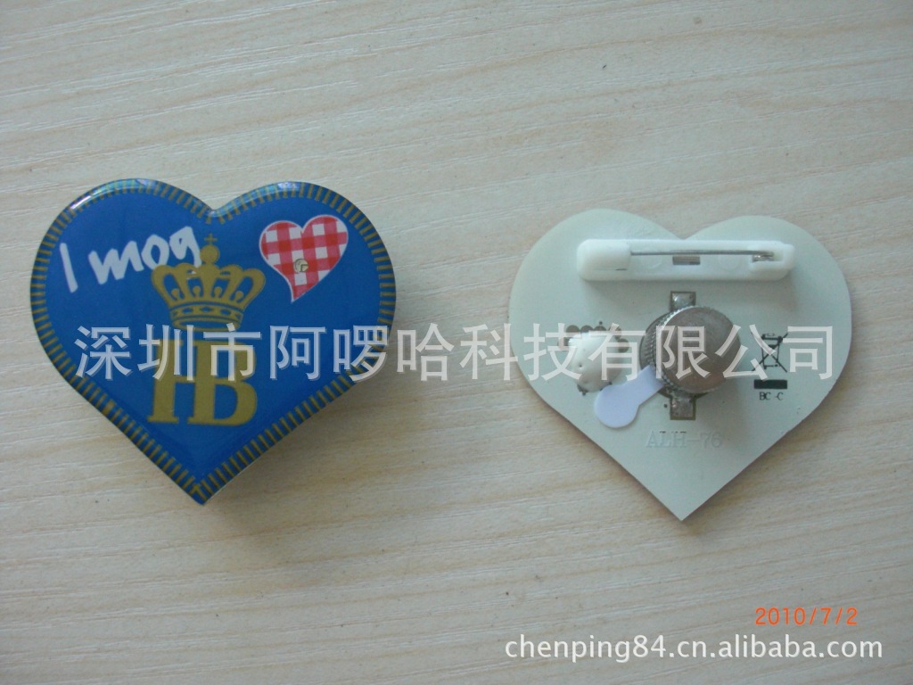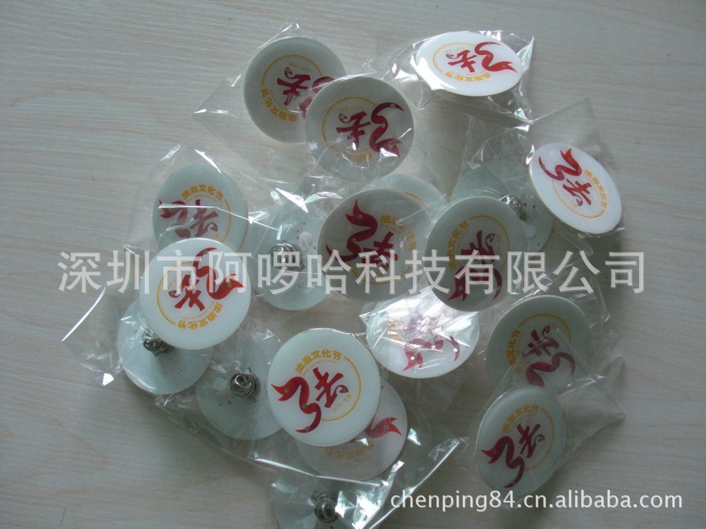 注:我司生产发光胸章多年,有丰富的胸章模板库存,可快速为你提供大货产品,且不用开模,可为您省下模具费。