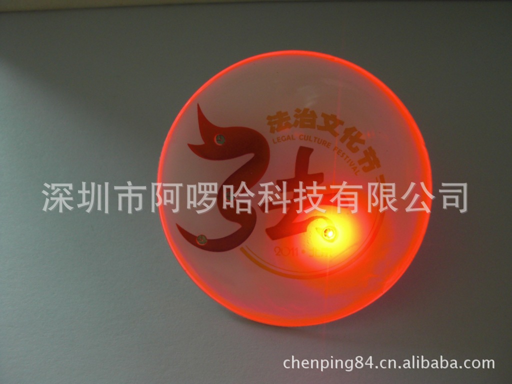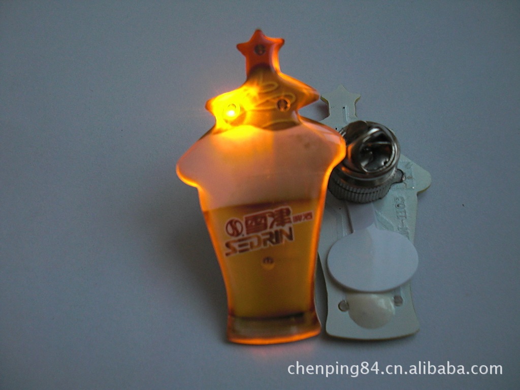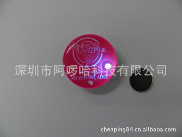 产品大小:客户自定 到货时间:样品确定后20交货 付款方式:T/T付款! 30%前TT ,余款在出货前付清 产品描述:闪光胸章 1)通过胸章后的五金圈的扭距控制闪光! 2)电池:LR927/CR927 电池寿命:至少24小时3)闪光色彩供应:红,黄。绿,蓝。翠绿。白,七彩4 )背面:磁铁 /安全别针/蝴蝶扣5 )做成本公司LOGO样式或节日性样式是不可多得的广告礼品!