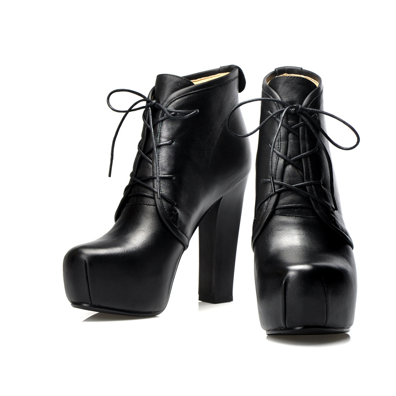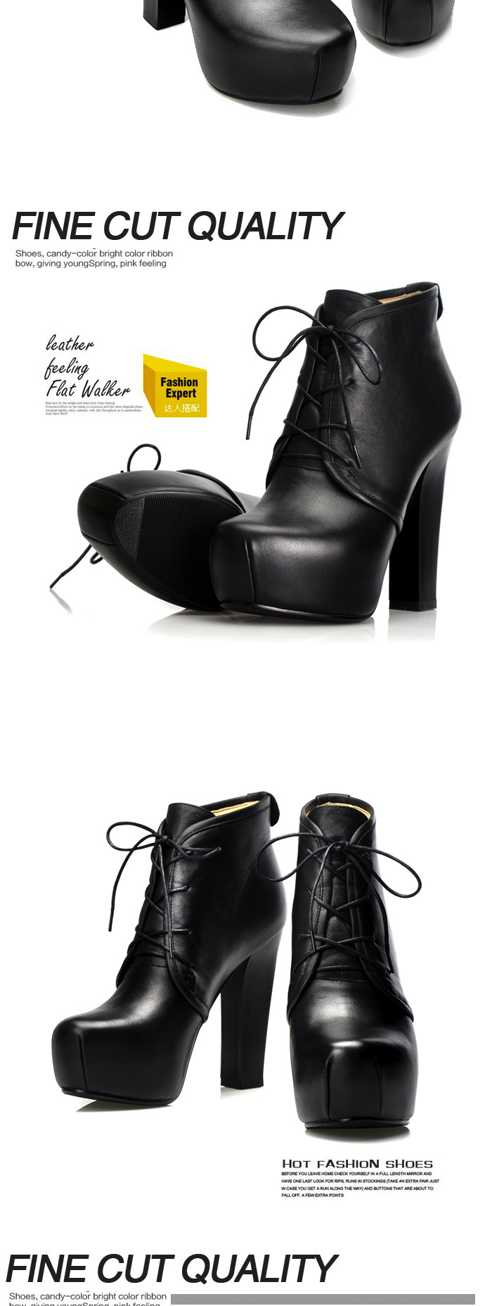 欧美秋冬新品女靴 时尚松糕底 圆头系带 金属装饰性感潮流女靴