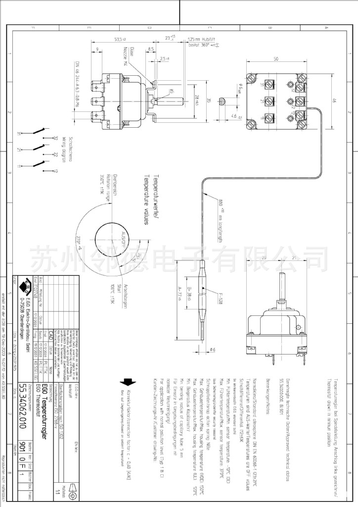 55.13012.390 温度范围 30-85度,探头6Φ 94mm ,单极单投,常闭,毛细管带PVC护套