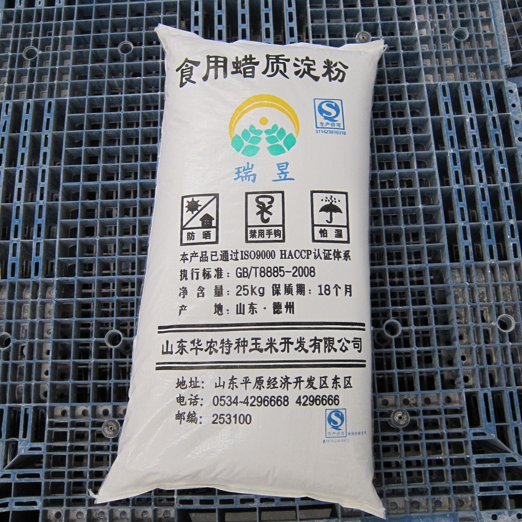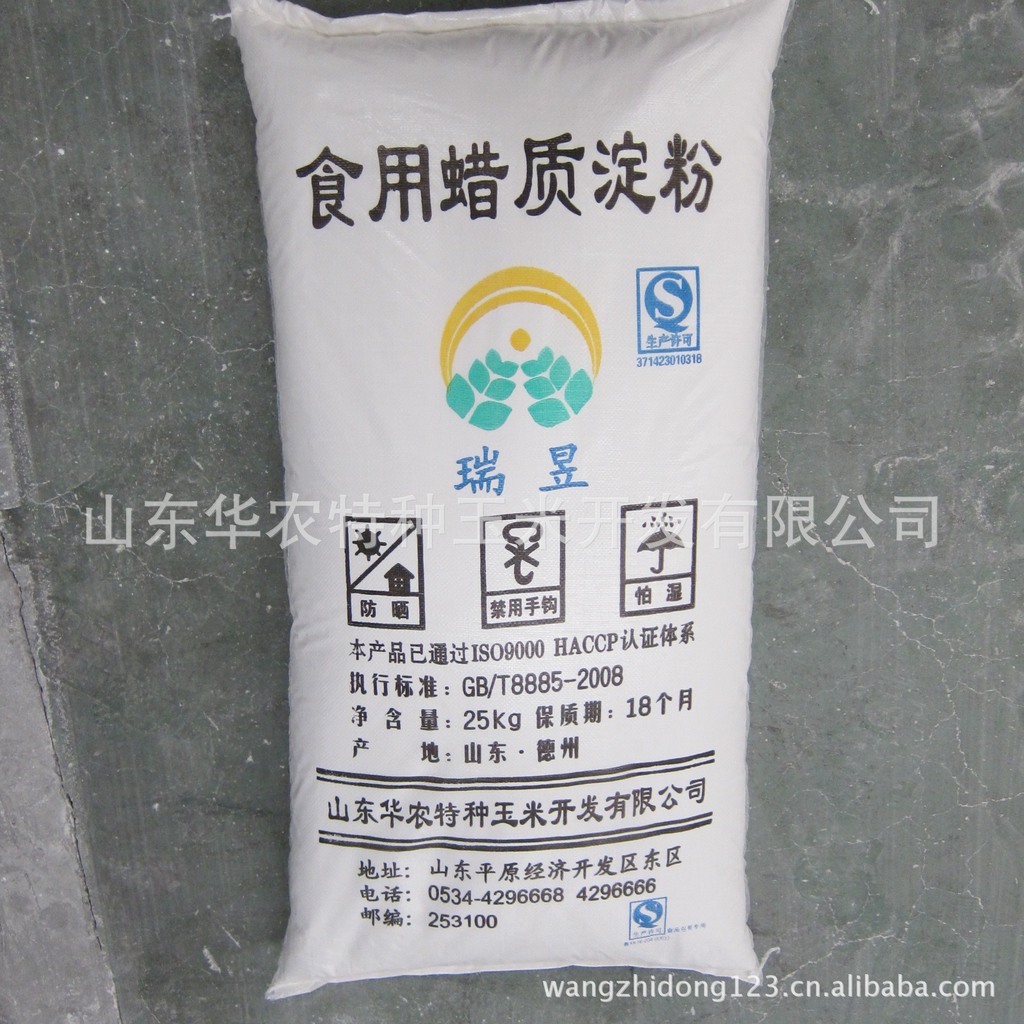 与普通淀粉相比具有如下特性:A、几乎全部为支链淀粉;B、具有高度的膨胀型; C、糊液透明度高、稳定性强、不易老化;D、糊液具有较强的粘结性和成模性等,变性淀粉可作为增稠剂、乳化剂、黏着剂、悬浮剂广泛应用于食品、医药、农业、建筑、工业等领域中,具有广阔的市场发展前景。蜡质淀粉的质量指标:外观:白色不透明粉气味:有蜡质淀粉特有的香气,无异味水份:≤13.0%(或根据客户要求)。蛋白质:≤0.35%(DS)脂肪:≤0.15%(DS)灰分:≤0.10%(DS)二氧化硫:≤10.0ppm粒度:≥99.5%(100MESH)PH值:5.0-6.4白度:≥92.0% 酸度:≤15.0ML支链淀粉:≥95.0%粘度:布拉班德粘度曲线的最高值为700-800BU,糊化后冷却至45℃时粘度值约为200-300BU.