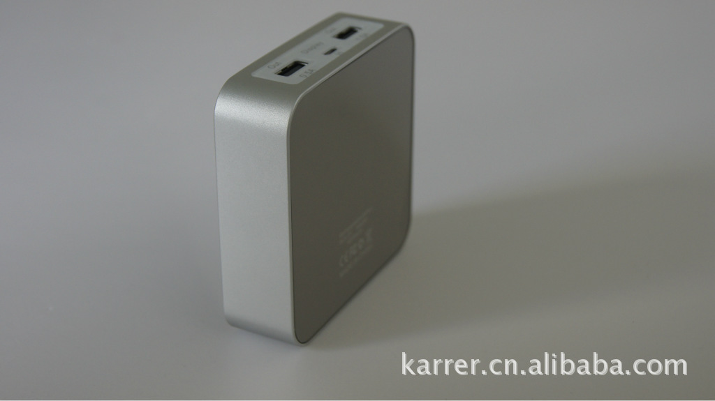 电芯类型:聚合物锂电池 6000mAh输入电流:DC 5V-1000mAh输出电流:DC 5V-1500mAh 5V-500mAh充电方式:电脑USB接口、交流电转接器适用设备:多种手机及移动电子设备尺寸规格:78*78*22mm 充电时间:约6小时重量:170g物料:金属外壳,上下PC镜面颜色:银、白、粉、蓝、绿配件:1条DC转接线;4个转接头保修期:一年附加功能:数字电显