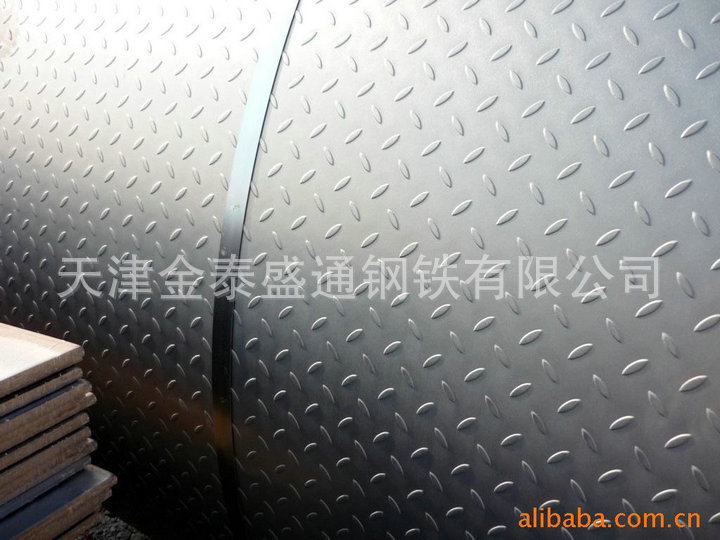 花纹钢板也称网纹钢板,是其表面具有菱形或突棱的钢板。花纹可以是单一的菱形、扁豆形或圆豆形,也可以由两种或两种以上花纹适当地组合成为组合型花纹板。花纹主要起防滑和装饰作用。组合型花纹板的防滑能力、抗弯能力、节约金属量及外观等方面的综合效果,均明显优于单一型花纹板。花纹钢板广泛用于造船、锅炉、汽车、拖拉机、火车车厢及建筑等行业。花纹钢板由于其表面有突棱,有防滑作用,可用作地板、厂房扶梯、工作架踏板、船舶甲板、汽车底板等。