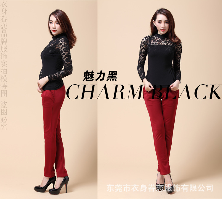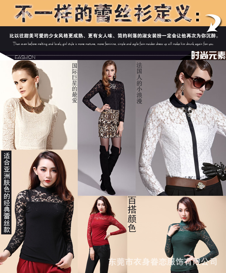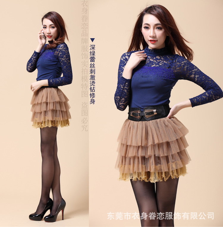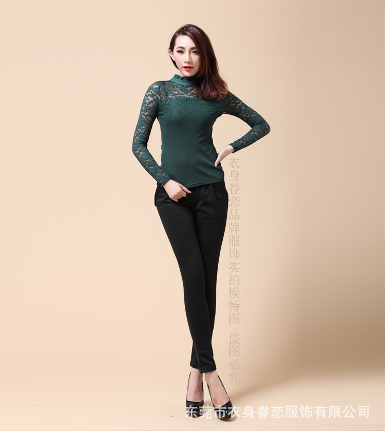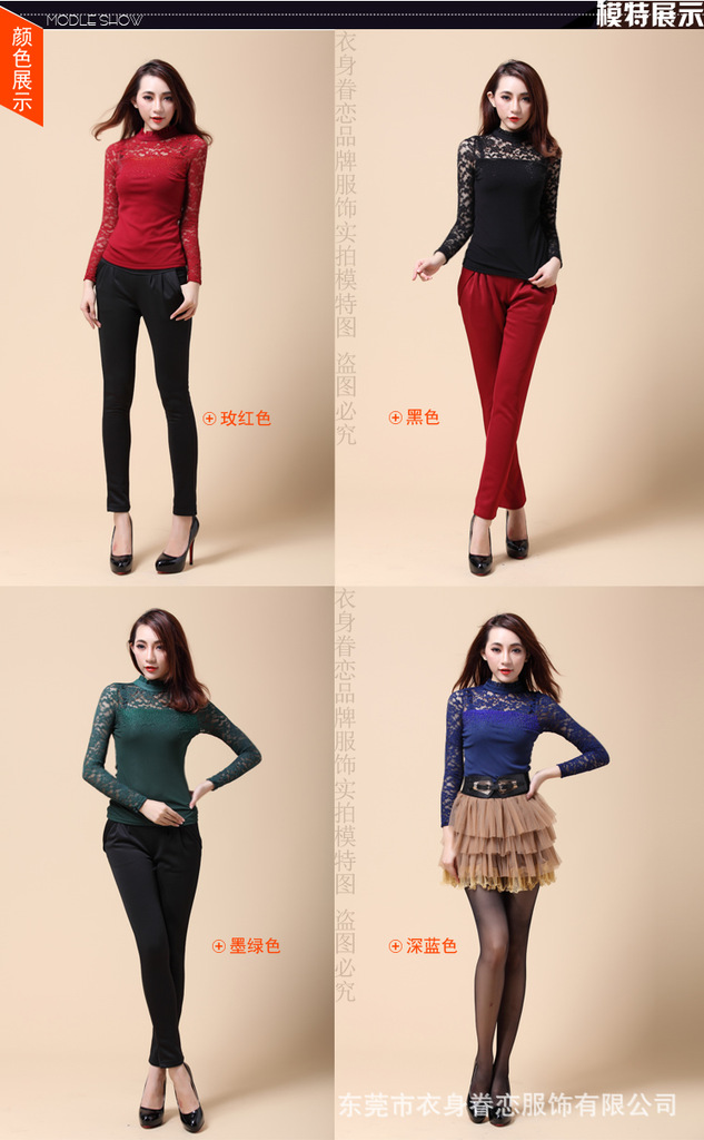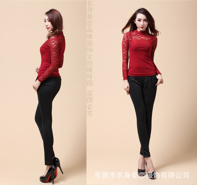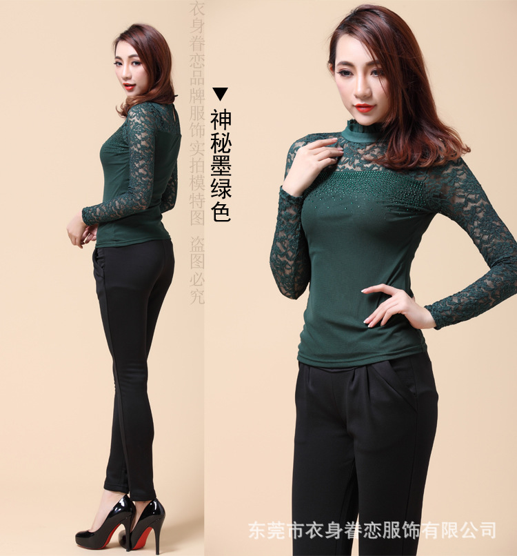 蕾丝长袖打底衫 秋冬韩版高领 大码蕾丝打底衫 淘宝爆款10067