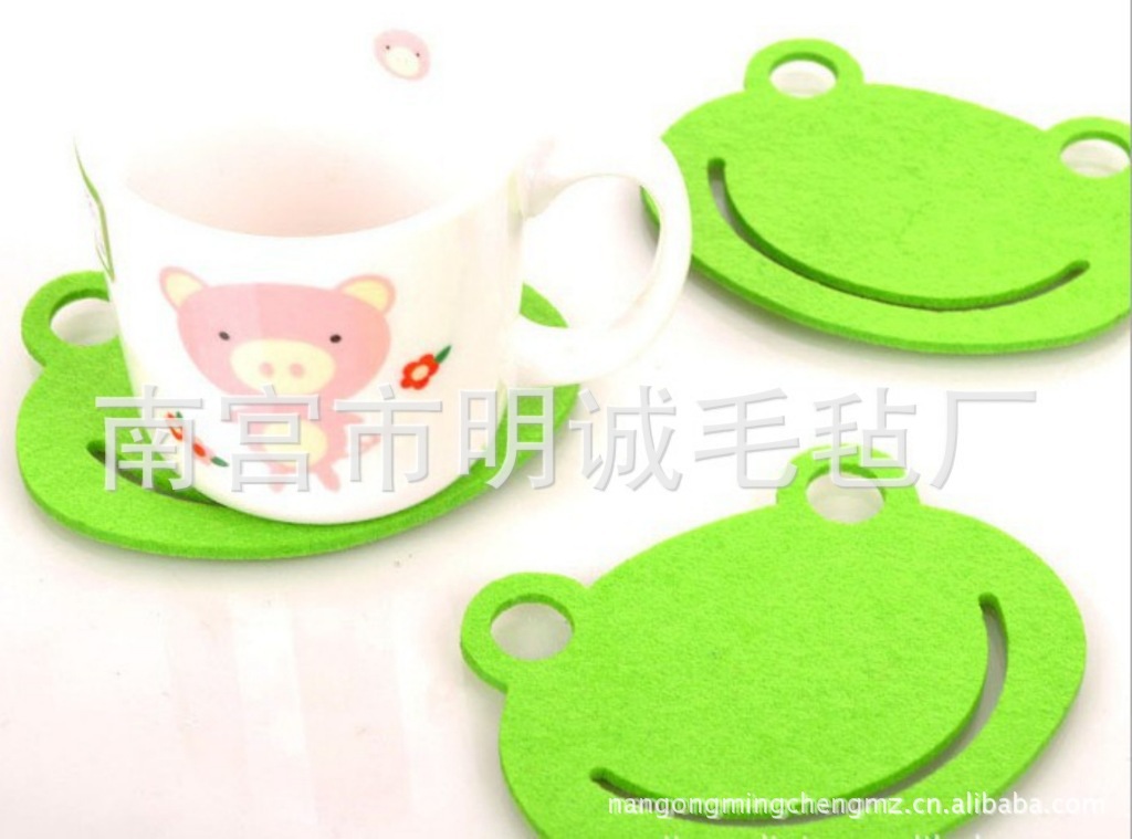 毛毡杯垫功能简介 采用化纤材质,软硬适中,手感柔软,结实耐用,且回收率高,有利于环保,颜色鲜艳,多种多样,激光雕刻,形象逼真,造型和颜色都透出大自然的气息,耐磨的毛毡材料,可持久使用,能够充分隔热,保护桌子,是现在家庭装饰必备小饰品。