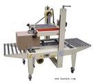 自动折盖封箱机将纸箱中缝封好,然后让纸箱通过90度转角器,将纸箱旋转90度,进入自动角边封箱机,可以同时将与中缝垂直的4个角边用胶带封好,完成工字型自动封箱。该款封箱机采用PLC控制系统,机器自动调节各种纸箱规格的封箱宽度及高度;封箱过程自动化,适合同一时段多种规格的纸箱封箱。全自动角边封箱机设计特殊,胶带粘贴,抚平,封箱整齐美观,易于保养。可一次完成角边上下封箱动作,即可单机作业,也可以与流水线配套使用。