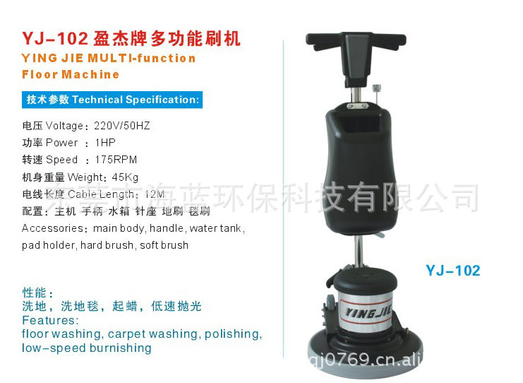 性能:洗地,洗地毯,起蜡,低速抛光