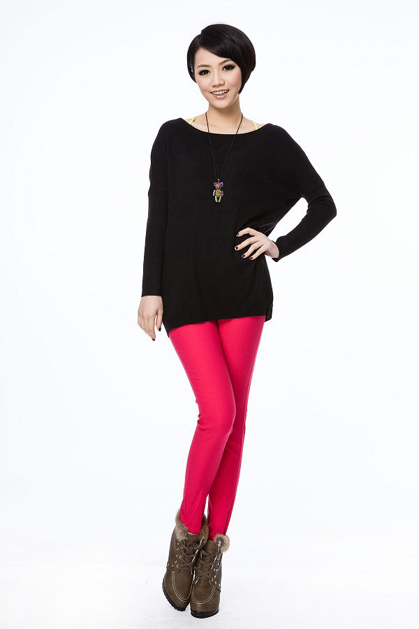 春秋款新品韩版宽松大码圆领套头袖长款含兔毛薄款毛衣9857