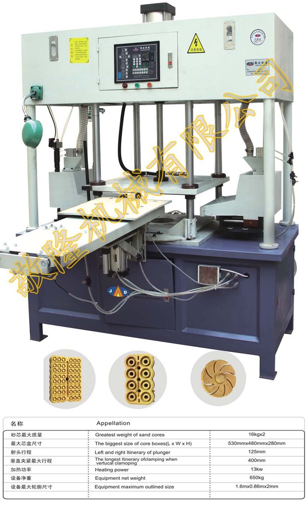 产品主要有:重力浇铸机、双头全自动射芯机、立式射芯机混砂机、锌合金浇铸机和气动夹具、平面研磨机等。