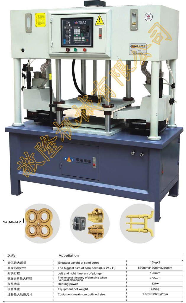 产品主要有:重力浇铸机、双头全自动射芯机、立式射芯机混砂机、锌合金浇铸机和气动夹具、平面研磨机等。