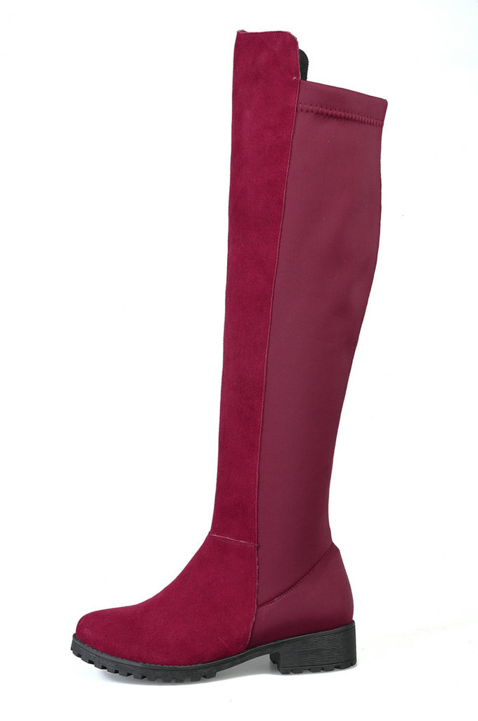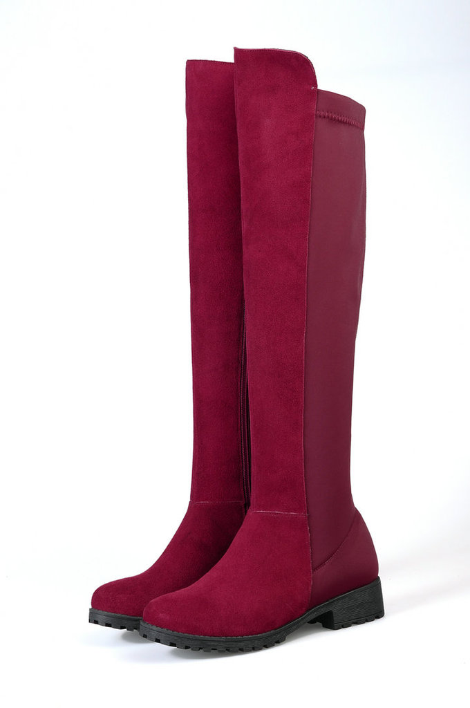 头层彩色中跟牛皮过膝长筒靴女靴,时尚圆头方根全皮骑士靴女靴