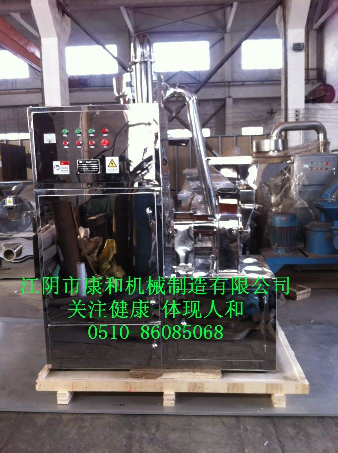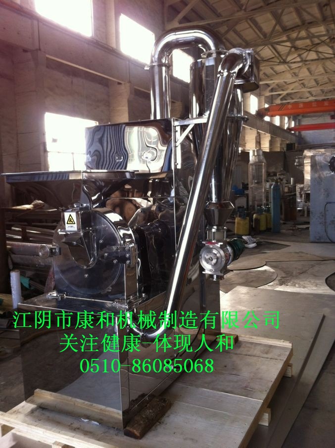 粉碎机由粉碎主机、旋风分离器、除尘箱及引风机等几部分组成,本机采用活动齿盘和固定齿圈筛网环物料受冲击剪切、摩擦的面宽。同时活动齿盘在高速旋转时,产生了强力的气流,把粉碎室的热量和物料一起从筛网中很快流出。控制粒度可以用更换筛网来决定,而且可以用一级或二级来回收物料、不扬尘,该机按GMP标准设计。整机采用不锈钢材料制造。主机采用水冷却。生产过程无粉尘飞扬。涡轮粉碎机具有体积小、能耗低、传动平稳、噪音低、密封度高、自冷功能好、拆装维护调换零件方便。维护调换零件方便。