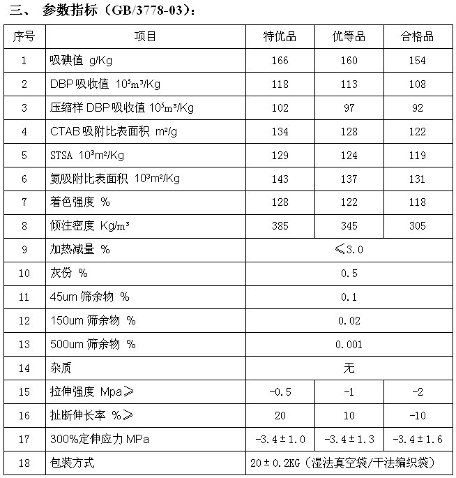 主要是以煤焦油作为原材料,属于超耐磨炭黑品种,具有较高的结构性,属硬质性填充材料,能赋予胶料较高的拉伸强度和抗撕裂强度,并有一定的导电性,但生热和硬度较高。