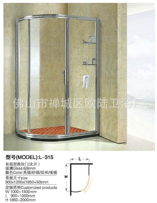 注意事项1、淋浴房尺寸的预埋孔位应在卫生间未装修前就先设计好。 2、已安装好供水系统和瓷砖的最好定做淋浴房。 3、布线漏电保护开关装置等应该在沐浴房安装前考虑好,以免返工。 4、沐浴房的样式依卫生间布局而定,常见的有转角型和一字型。 5、安装沐浴房时应严格按组装工艺安装。 6、淋浴房必须与建筑结构牢固连接,不能晃动。 7、敞开型淋浴房必须用膨胀螺栓,与非空心墙固定、排水后,底盆内存水量不大于500克。 8、沐浴房安装后的外观需整洁明亮,拉门和移门相互平行或垂直,左右对称、移门要开闭流畅,无缝隙、不渗水,淋浴房和底盆间用硅胶密封密封。