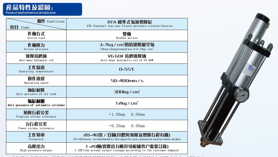 1、以上数据为我司自定标准数据,如若贵司因实际工作需要须自订"吨位"、"增压力行程"、"预压行程"及"提升力"时,我司可接受特殊之定制。