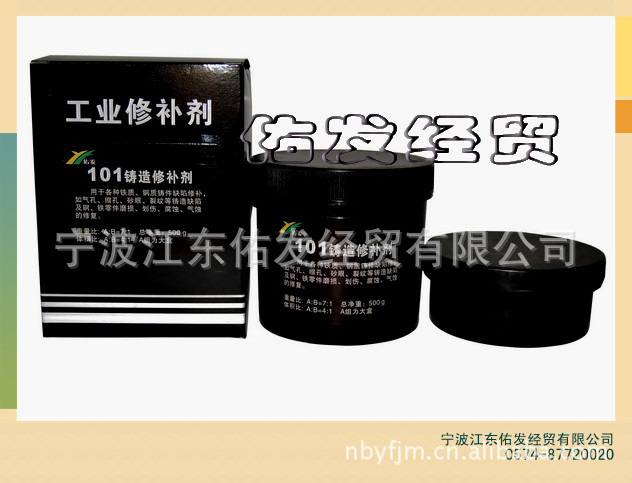 101铸造修补剂:用于各种铁质、钢质铸件缺陷修补,如气孔、缩孔、砂眼、裂纹等铸造缺陷及铁质、钢质零件磨损、划伤、腐蚀气蚀的修复。