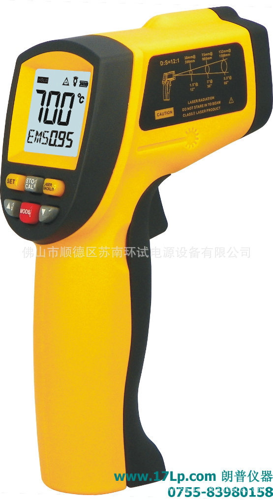 测量范围:-18 ~ 1650℃ ( 0~3002℉)度:±1.5% or ±1.5℃重复性:±1% or ±1℃物距比:50:1发射率:0.10-1.00可调分辨率:0.1℃/℉响应时间:500毫秒响应波长:8-14μm最大值/最小值/平均值/差值高/低温报警设置测量数据储存功能℃/℉温度单位转换数据保持显示定位激光开/关选择LCD背光开/关选择自动关机包装方式:彩盒+PP工具盒电源:9V电池产品净重:312克产品尺寸:200*155*59毫米