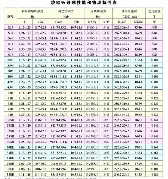 1. 磁铁性能。