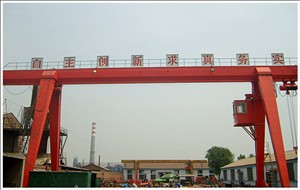 门式起重机是桥式起重机的一种变形。在港口,主要用于室外的货场、料场货、散货的装卸作业。它的金属结构像门形框架,承载主梁下安装两条支脚,可以直接在地面的轨道上行走,主梁两端可以具有外伸悬臂梁。门式起重机具有场地利用率高、作业范围大、适应面广、通用性强等特点,在港口货场得到广泛使用。