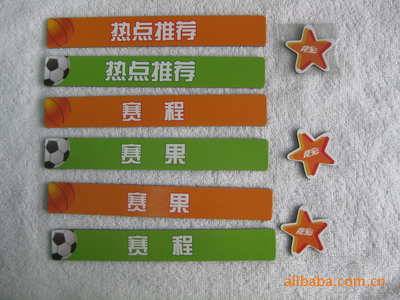 4)磁性留言板 白板:采用软胶磁铁(或纸板)+铜版纸四色印刷裱光膜+可擦笔