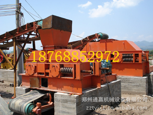 对辊式破碎机适用于在水泥,化工,电力,冶金,建材,耐火材料等工业部门破碎中等硬度的物料,如石灰石,炉渣 ,焦碳,煤等物料的中碎,细碎作业。 对 辊破碎机的工作原理及结构 1、该系列对辊破碎机主要由辊轮组成、辊轮支撑轴承、压紧和调节装置以及驱动装置等部分组成。 2、出料粒度的调节:两辊轮之间装有楔形或垫片调节装置,楔形装置的顶端装有调整螺栓,当调整螺栓将楔块向上拉起时,楔块将活动辊轮顶离固定轮,即两辊轮间隙变大,出料粒度变大,当楔块向下时,活动辊轮在压紧弹簧的作用下两轮间隙变小,出料粒度变小。垫片装置是通过增减垫片的数量或厚薄来调节出料粒度大小的,当增加垫片时两辊轮间隙变大,当减少垫片时两辊轮间隙变小,出料粒度变小。 3、驱动机构是由两个电动机,通过三角皮带传动到槽轮上拖动辊轮,按照相对方向运动旋转。在破碎物料时,物料从进料口通过辊轮,经碾压而破碎,破碎后的成品从底架下面排出。 4、为了安全,传动部分应根据实际情况自行安装安全罩。 双辊破碎机可供选矿、化工、水泥、耐火材料、磨料、建筑材料等工业部门中细碎各种高、中等硬度的矿石和岩石之用,尤其在建筑材料工业中生产瓜米石和绿豆沙等产品,有较一般破碎机械更优异的效果。