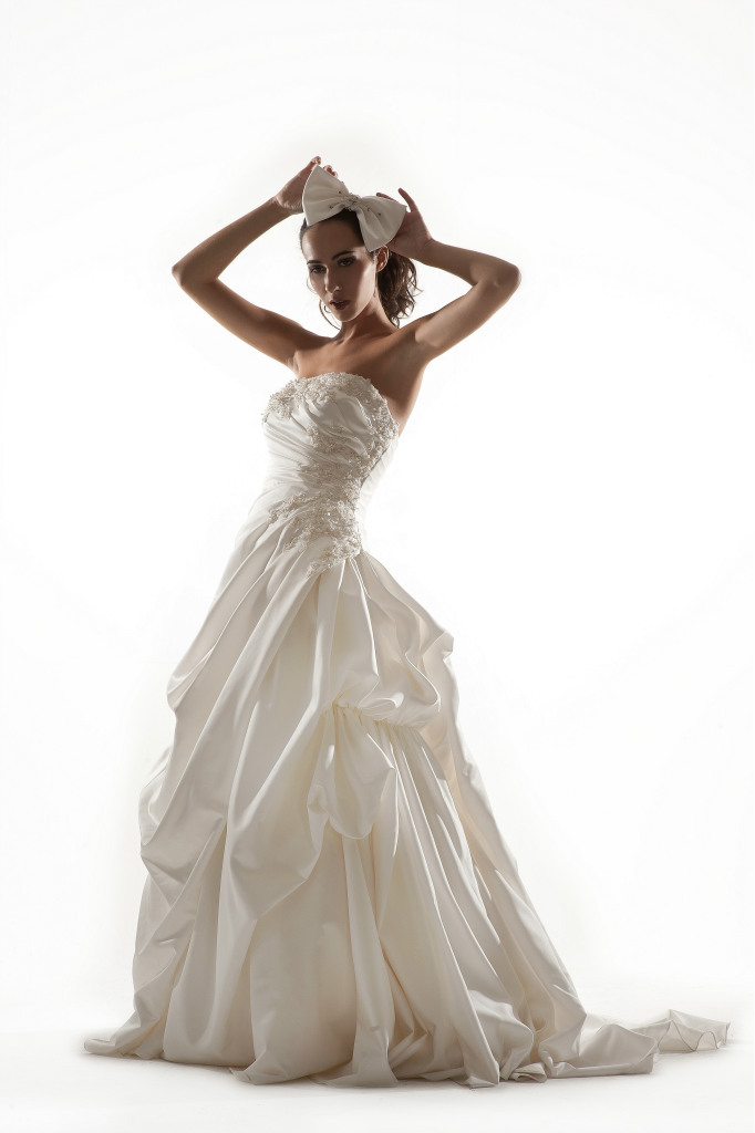 WE004-2011热销款精致简约抹胸拖尾婚纱