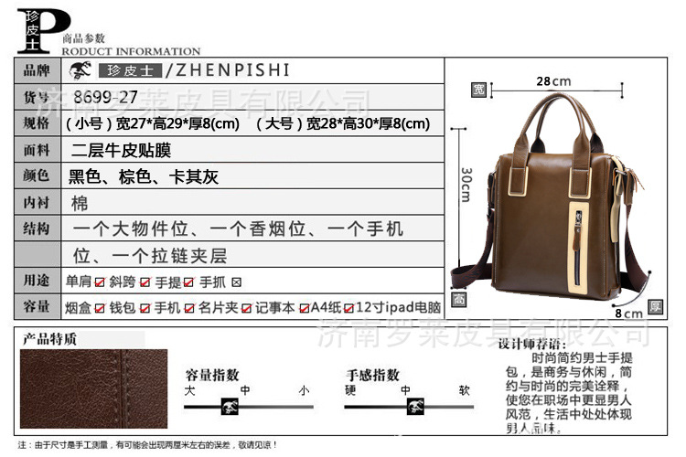 济南罗莱皮具有限公司是一家在箱包领域经营多年的公司,靠着良好的信誉,可靠的品质,生意日渐兴隆,在阿里巴巴上的经营已经有相当的规模,在国内生意日渐兴隆的同时,国际通道也在启动的路上,不足之处欢迎各位监督及献言献策!