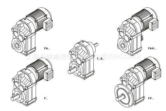 | 快速选型表: | | F系列型号 | 输出轴径(mm) | 中心高(mm) | 配置功率(kw) | 速比 | 许用扭矩(Nm) | | 实心轴 | 空心轴 | | F37 | 25k6 | 30 | 70h13 | 0.12~3 | 4~138 | 180 | | F47 | 35k6 | 35 | 80h13 | 0.12~5.5 | 4~175 | 360 | | F57 | 35k6 | 40 | 100h13 | 0.18~7.5 | 4~197 | 420 | | F67 | 40k6 | 40 | 100h13 | 0.37~7.5 | 4~197 | 700 | | F77 | 50k6 | 50 | 120h13 | 0.75~11 | 4~197 | 1350 | | FC87 | 60m6 | 60 | 155h13 | 1.5~22 | 4~193 | 2500 | | F97 | 70m6 | 70 | 180h13 | 2.2~30 | 4~203 | 3700 | | F107 | 90m6 | 90 | 200h13 | 3~45 | 4~205 | 6500 | | F127 | 100m6 | 100 | 240h13 | 5.5~90 | 4~202 | 10000 | | F157 | 120m6 | 120 | 270h13 | 11~160 | 4~190 | 18000 |