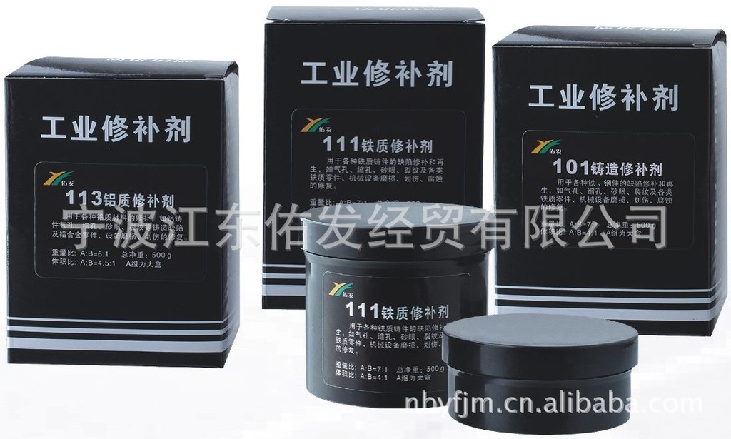 111铁质修补剂:用于各种铁质铸件的缺陷修补和再生,如气孔、缩孔、砂眼、裂纹及各类铁质零件、机械设备磨损划伤、腐蚀的修复。