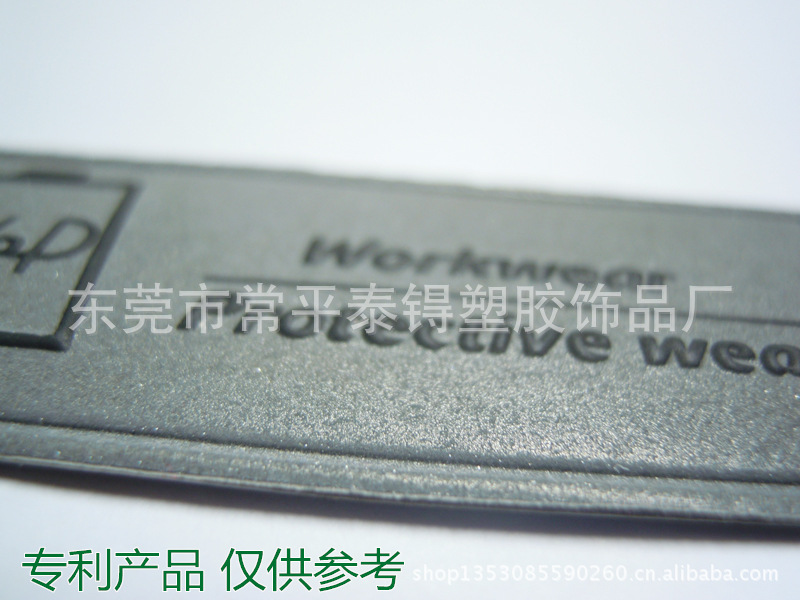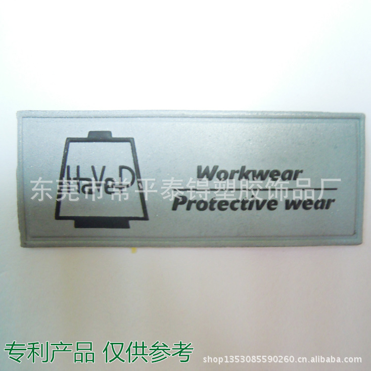 1、本产品属于PVC环保产品,产品表面有凹凸手感,属于2D\3D商标,可用于箱包、服饰、鞋类企业