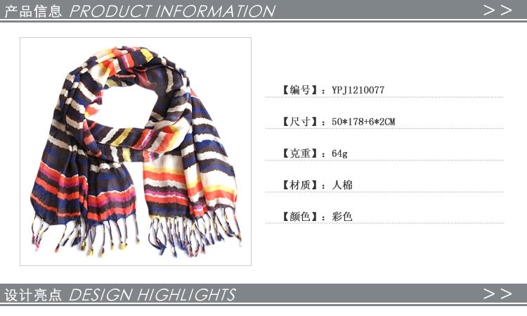 不对称条纹印花围巾 时尚礼品 披肩 围巾工厂 围巾批发 围巾定做