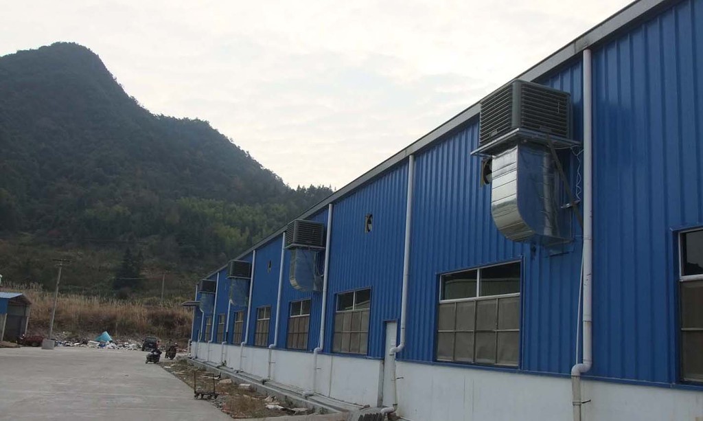 . 博恩德 .湿帘空调. 工作原理: 当风机运行时.湿帘空调.腔内产生负压、使机外空气通过湿帘后进入机器腔内,湿帘上的水在绝热状态下蒸发,带走大量潜热,净化、加湿、冷却增氧的冷气被风机送入车间,通过不断对流,从而达到制冷、降温效果 . 博恩德 .湿帘空调. 排风量的确定及排气要求 本产品是不断往室内注入新鲜的冷空气来更换室内浑浊的空气而达到降温的目的,所以机器制冷系统的基本形式是“一进一出”,而不是封闭的。一般情况下利用室内正压自然排风,在密闭的空间可以采用机械排风。为了达到良好的通风换气降温的效果,机器制冷系统的排风量应为总送风量的85%以上,自然排风的速度应控制在2m/s左右以免引起过大的气流噪声。 为了保持适当的换气次数使机器能达到佳的制冷效果,系统要求有充足的排气面积(排风量)。自然排风排气口的要求是以每3600 m3/h的风量必须不少于0.8㎡的排气口。所设计的房间必须依照安装的.湿帘空调.的总风量所需要的排气口要求设定,如若没有自然排气口,则必须增加机械排气以达到排气要求 注:普通的门提供的排气口为1.89㎡ 普通的窗提供的排气口为0.77㎡ |