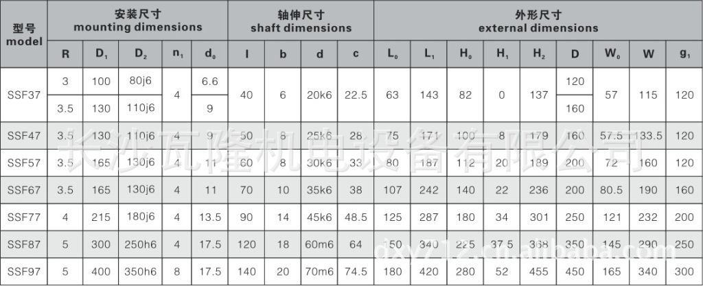 SS系列斜齿轮硬齿面减速机基本参数表: